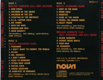 different track list!!! Also on this CD can be found a complete Ozzy Osbourne concert plus the